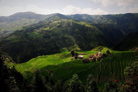 還有那美輪美奐的加榜梯田,有著“農(nóng)耕文化博物館”之譽(yù),堪稱“人間絕境”。加榜梯田位于從江縣西部的月亮山腹地,是中國梯田之一。獨(dú)具苗鄉(xiāng)特色的吊腳樓均勻散落于近萬畝的梯田之上,猶如銀河中閃爍的繁星。加之梯田緊靠加車河,雨水充沛,每天清晨,一層層云霧便從河邊緩緩升起,慢慢的將梯田連同吊腳樓一起籠罩,如此盛景,保證會讓你在陶醉之余生起一種身處幻境的錯覺。在以各種方式評選的中國 美梯田中,無論是10大、 9大,還是5大、4大,加榜梯田總會占據(jù)其中一席。